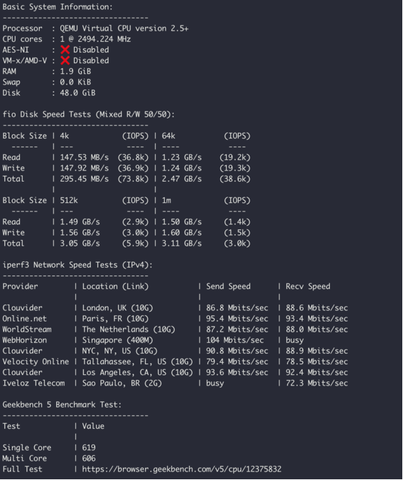 CPU Model: QEMU Virtual CPU version 2.5+ 2.49 GHz