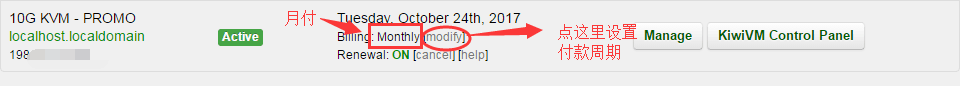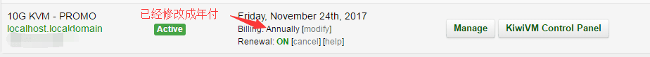 4、下图是蜗牛把自己VPS的付款周期从Monthly(月)改成了Annually(年)。