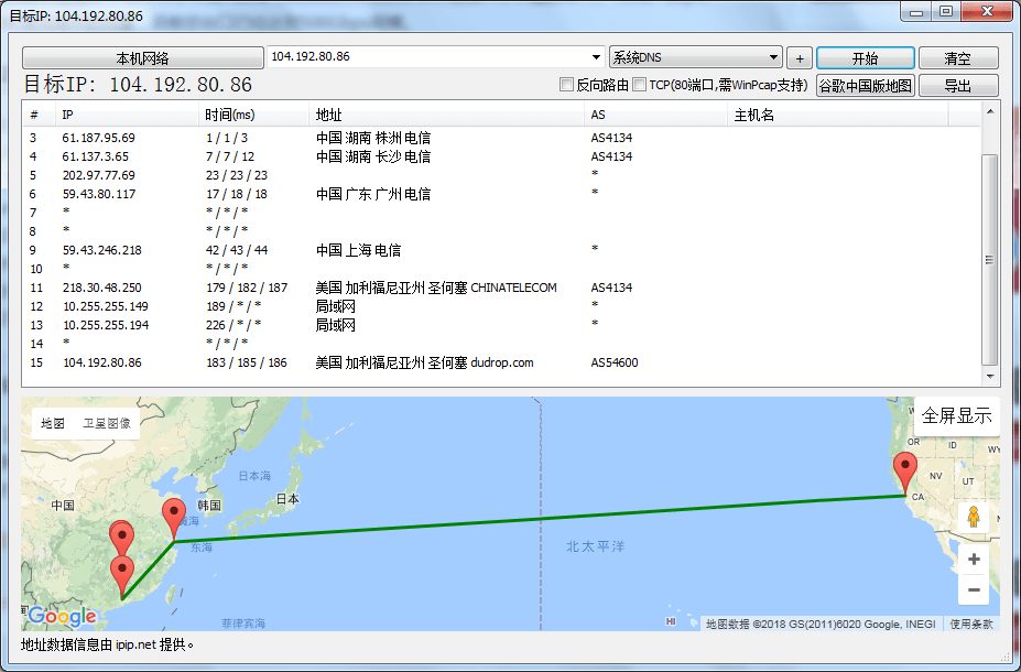 18.|-- 104.192.80.86 0.0% 4 151.9 152.0 151.8 152.5 0.0