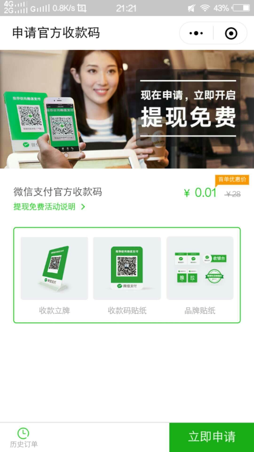 目前网友爆出了最新0.01元包邮申请微信收款码的方法,