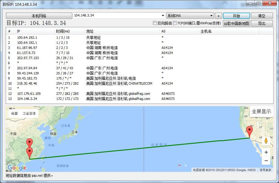 [root@jdu4e00u53f7 ~]# mtr -rw 104.148.3.34 Start: Sun Jan 28 21:07:47 2018 HOST: jdu4e00u53f7 Loss% Snt Last Avg Best Wrst StDev 1.|-- ??? 100.0 10 0.0 0.0 0.0 0.0 0.0 2.|-- ??? 100.0 10 0.0 0.0 0.0 0.0 0.0 3.|-- 100.127.3.115 0.0% 10 1.0 1.8 0.7 10.4 3.0 4.|-- 100.127.3.103 0.0% 10 2.8 2.9 1.9 6.2 1.1 5.|-- 100.127.125.80 0.0% 10 2.4 2.5 2.3 3.4 0.0 6.|-- 180.149.137.117 0.0% 10 4.2 5.6 4.0 12.6 3.0 7.|-- 180.149.159.57 0.0% 10 2.7 2.6 2.4 2.8 0.0 8.|-- 180.149.128.117 0.0% 10 3.4 3.3 3.1 3.6 0.0 9.|-- ??? 100.0 10 0.0 0.0 0.0 0.0 0.0 10.|-- 202.97.57.25 0.0% 10 26.5 27.5 26.5 29.3 1.0 11.|-- 202.97.63.225 0.0% 10 28.6 29.5 28.5 30.9 0.8 12.|-- 59.43.244.117 0.0% 10 27.3 27.9 27.2 33.2 1.8 13.|-- 59.43.182.145 90.0% 10 185.4 185.4 185.4 185.4 0.0 14.|-- 59.43.186.214 0.0% 10 169.7 172.1 168.8 178.4 3.2 15.|-- 218.30.48.46 0.0% 10 165.5 165.8 165.5 166.6 0.0 16.|-- 104.148.23.93 0.0% 10 278.8 277.0 206.7 379.4 51.1 17.|-- 107.179.61.109 0.0% 10 184.0 184.1 183.3 184.9 0.0 18.|-- 104.148.3.34 0.0% 10 179.4 182.9 179.4 187.8 3.5上海腾讯云