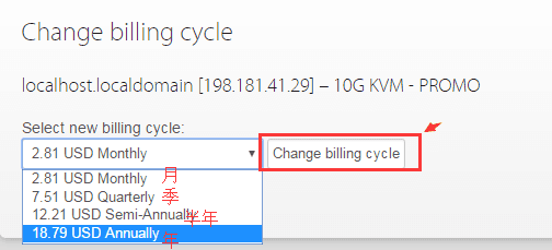 目前高品质美国CN2一部分套餐修改付款周期为年付后就不支持更改为月付、季付、半年付等周期了。原因是高品质美国CN2之前所有套餐是支持月、季、半年、年四种周期的,但前段时间高品质美国CN2基本上把所有512M内存套餐和KVM独立机房1G套餐都改成了年付周期,所以如果我们将之前购买的月、季、半年、年四种周期改成年付后是无法在进行付款周期更改的。