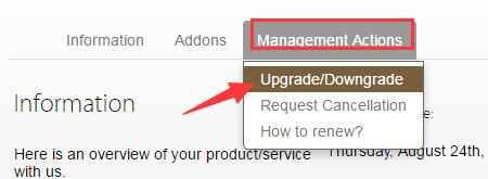 2、点击“Management Actions”再点击“Upgrade/Downgrade”。