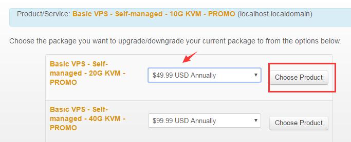 3、然后选择要升级的配置点击“Choose Product”升级或降级。如果是升级需要补差价。