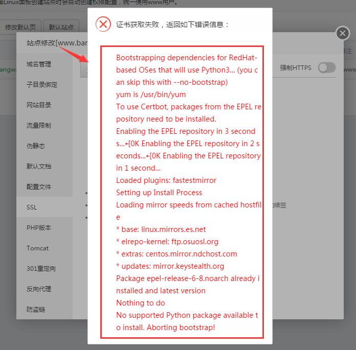 使用翻译软件翻译了下,是Python版本太低的原因,蜗牛的高品质美国CN2VPS使用的是Centos 6系统,Python版本是2.6.6。想要成功申请Let's Encrypt免费SSL域名证书,Python版本必须高于2.7。于是尝试着使用下面命令把Python到2.7以上版本。