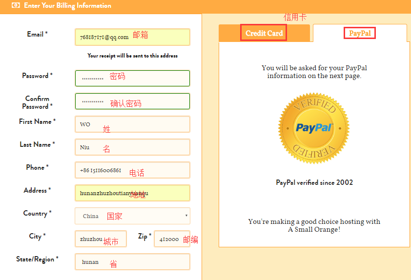 接下来就是填写注册信息和选择付款方式,建议使用Paypal。