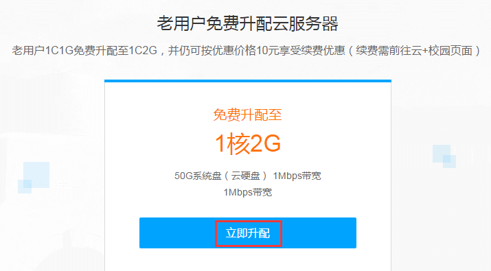 点击这里进入腾讯云学生机老用户免费升配云服务器页面