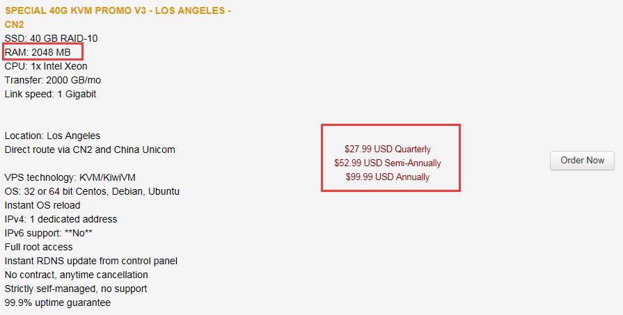 但是并不是所有的1G、2G内存套餐都做了调整,目前官网也就下架但还是可以购买洛杉矶独立机房OpenVZ VPS和弗里蒙特OpenVZ独立机房VPS的1G内存套餐还是有月、季度、半年、年付四个周期可以选择,不过在官网已经找不到购买链接,只能通过蜗牛789的链接购买。其实弗里蒙特机房还是比较适合国人使用的,给不给力,看看这个晚高峰测试就知道了高品质美国CN2西海岸机房晚高峰评测 洛杉矶三大机房/弗里蒙特如何选择(需要注意的是此文章测试当中CN2直连机房当时还没有加入中国联通直连),并且月流量也是其他套餐的2倍哦。