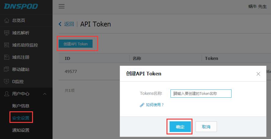 1、方法很简单,如果是腾讯云注册的域名,默认使用的是DNSPod.cn,没有DNSPod.cn账号的朋友可以先注册一个账号,然后把要申请免费证书的域名接入到DNSPod,并使用DNSPod的NS服务器进行解析。然后再按下图操作创建API。创建API后需要注意,弹出的窗口显示完整的“Token”,并且只显示这一次,所以请一定复制保存好。如果你的域名在阿里云,可以查看此文章来申请:如何使用阿里云域名API自动颁发Let’s Encrypt泛域名免费SSL证书。