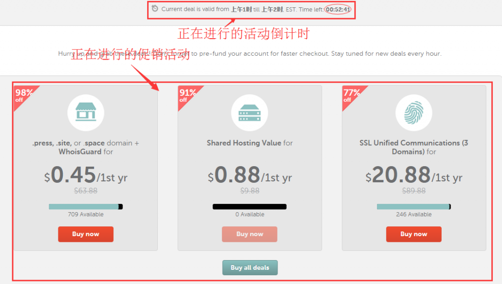打开上面网站后点击“domain registration, hosting, and SSLs →”进入黑色星期五活动页面。