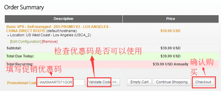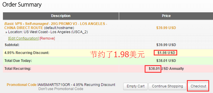 4.在确认购买页面可以使用促销优惠码。目前可以使用的优惠码是IAMSMART50BAR1和IAMSMART571GOR,能优惠4.95%。