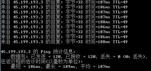 rtt min/avg/max/mdev = 186.730/187.006/187.213/0.232 ms