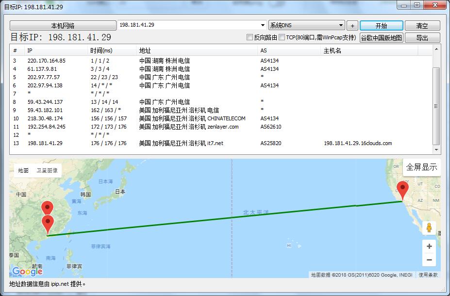 8.|-- 219.158.3.137 0.0% 10 161.8 162.4 156.5 169.9 4.3