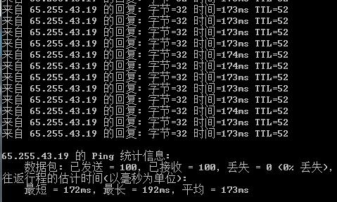 2、本地电信ping测试,100此发包,丢包次数为零。