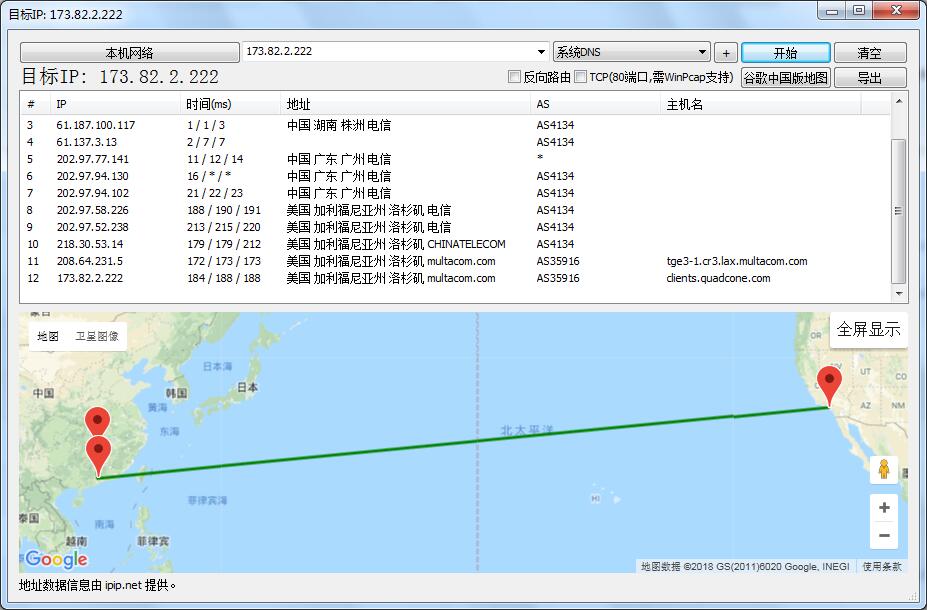 本地湖南电信路由追踪