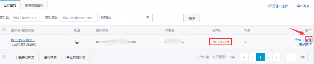 绑定手机后在回到阿里云虚拟主机管理页面点击“管理”就直接进入了主机管理面板。