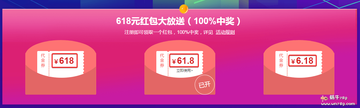 所有完成实名认证的都有可以参与抽奖活动,活动中奖率是100%,有618元、61.8元、6.18元三种代金券,蜗牛抽到了一个61.8代金券。 可以用于购买云主机、公网IP、云硬盘、云数据库 MySQL、云存储、缓存Redis、云数据库 MySQL 只读实例、云数据库 MongoDB、云数据库 SQL Server、IP高防、容器等产品,新购、续费、产品升级无使用门槛,大家可以试试自己运气吧。注意此项活动时间为:2018.5.30-2018.6.5,代金券有效期到2018.6.30日。