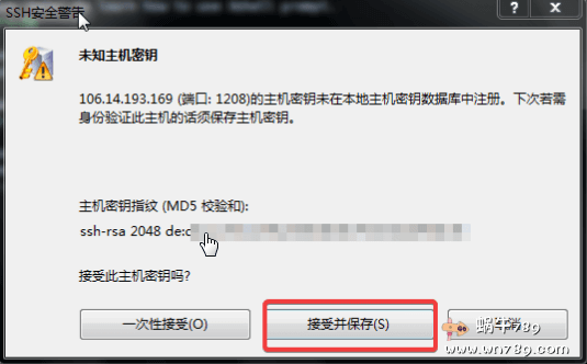 3、首次连接会提示如下图的安全警告,我们点击“接受并保存”。