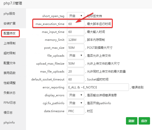 修改max_execution_time时间为60.