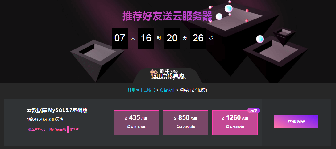 点击进入阿里云云数据库MySQL5.7基础版促销页面