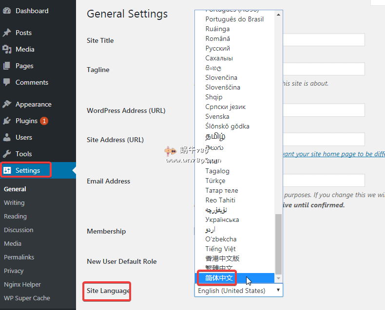 3、最后我们访问域名http://www.789wn.com就可以进入到自己的WordPress博客了。由于默认的是英文,我们需要登录后台更改语言为中文。然后设置WP Super Cache缓存插件,关于WP Super Cache缓存插件的设置可以查看此文章:WordPress静态缓存插件WP Super Cache最佳优化设置方案。