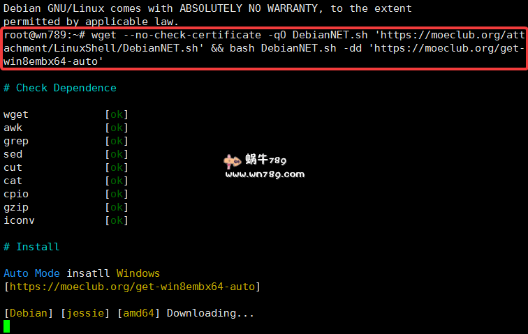 wget --no-check-certificate -qO DebianNET.sh 'https://moeclub.org/attachment/LinuxShell/DebianNET.sh' && bash DebianNET.sh -dd 'https://moeclub.org/get-win8embx64-auto'
