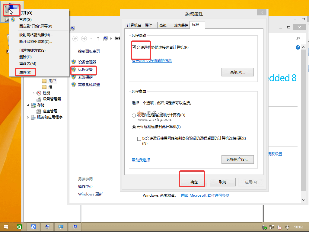 3、安装完成后的设置administrator用户密码,如下图,右键点击这台电脑,选择管理,然后选择用户组,再点击右键点击右侧红框位置,选择设置密码。