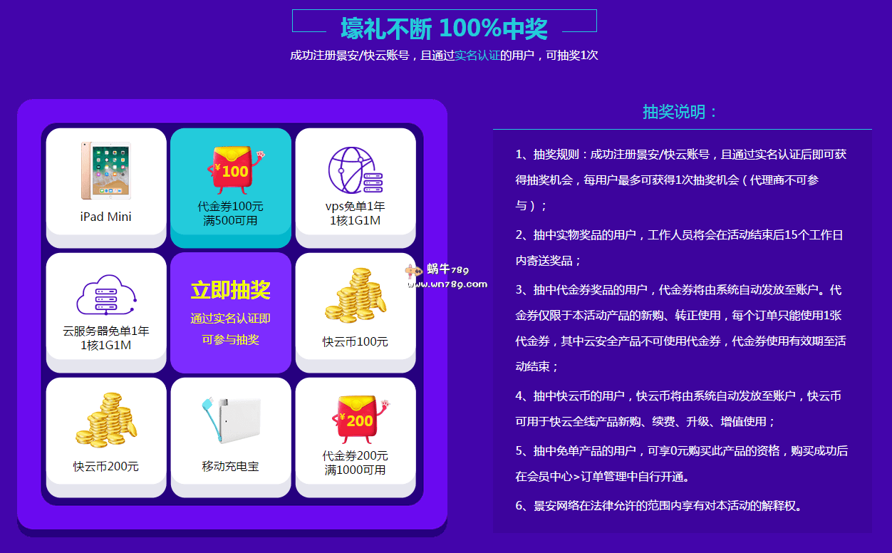 下面列举的事8月活动当中的两款爆款秒杀方案,适合稳定建站使用。参与用户是完成实名认证的景安网络用户,活动时间到8月31日截止,每天9:00开抢,每款只限量50台。