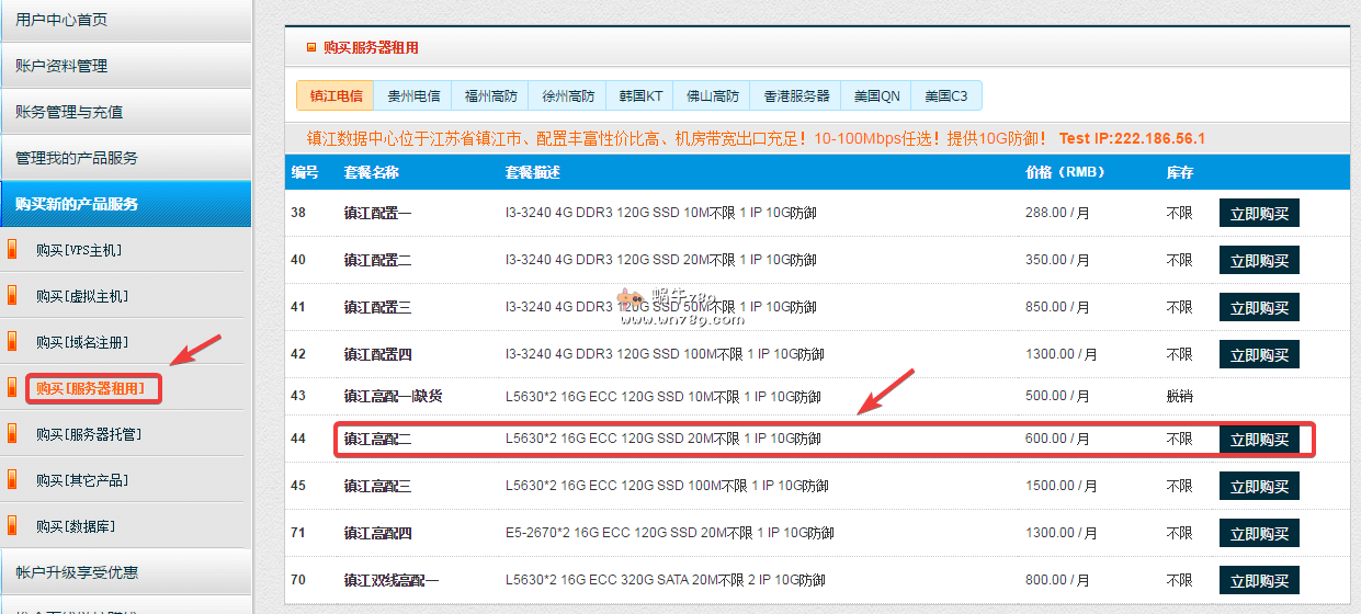 下面列举了两款比较高性价比的促销独立服务器方案,另外镇江配置二可以使用优惠码ZJ288(月付288元)、 ZJ2888(年付2888元);镇江配置四(100Mbps独享)可以使用优惠码ZJ899(月付899元);镇江配置一可以使用优惠码ZJ1999(年付1999元)。