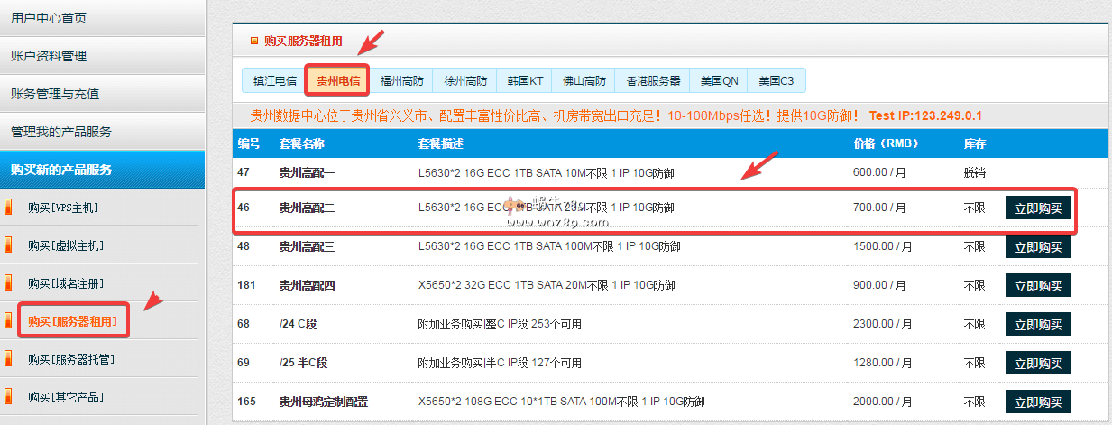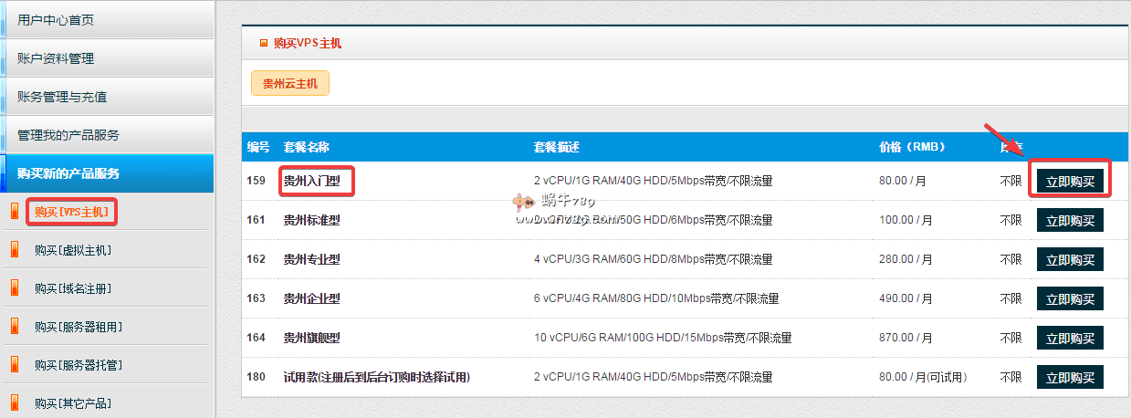 注册账号后并登陆就可以选择自己想要的VPS或独立服务器产品了。