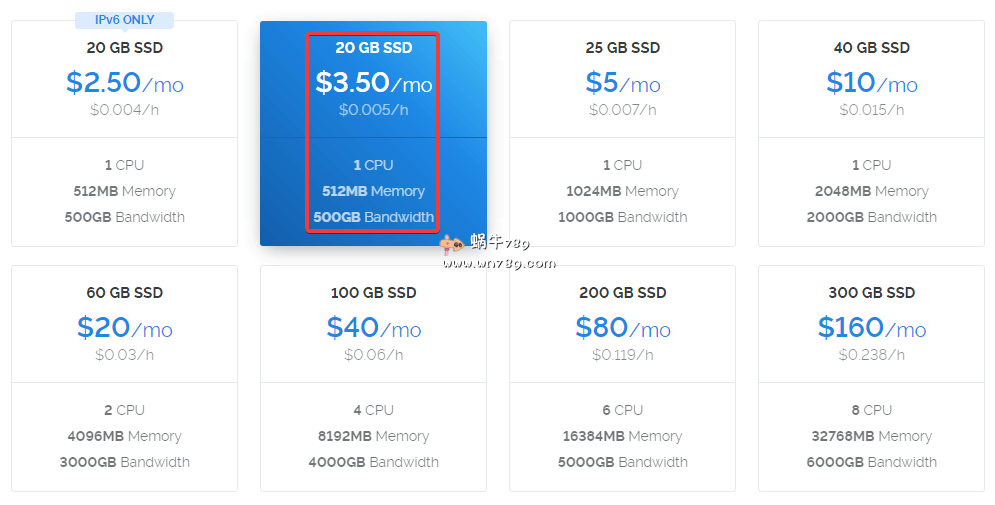 Vultr是来自美国的主机销售商,成立于2014年,是一个按小时计费的商家,不使用VPS了可以直接删除,不会因为VPS闲置而产生费用,对于那些需要短期使用VPS的朋友来说,Vultr是非常不错的选择。目前有国内访问速度较好的日本、新加坡、洛杉矶、西雅图、硅谷等15个数可以选择,并且已经支持支付宝、PayPal、信用卡等付款购买,国内用户购买门槛低。2018年6月低Vultr对2.5美元的512M内存方案VPS进行了调整,不再提供IPv4,仅支持IPv6;对于国内用户来说,由于IPv6没有普及,增加一个IPv4需要2美元/月,那么512M内存方案就成为了摆设,相信大家都不太愿意选择了。今天爆出Vultr新增了3.5美元/月的方案,配置是1核512M内存、20G SSD硬盘、500G月流量、1000Mbps端口、1个IPv4,配置跟之前的2.5美元方案是一致的,只是增加了1美元同时配置1个IPv4。对于需要Vultr低价小内存方案的朋友来说,3.5美元确实是不错的选择。最后说下Vultr的VPS产品稳定性非常好,蜗牛自己一直都在使用,适合对网路速度要求不是特别高(并不是说速度不好哦,只是相比CN2、CN2 GIA要差一点,国内用户推荐选择日本、洛杉矶、西雅图、硅谷、新加坡等数据中心),但追求稳定性的用户使用。