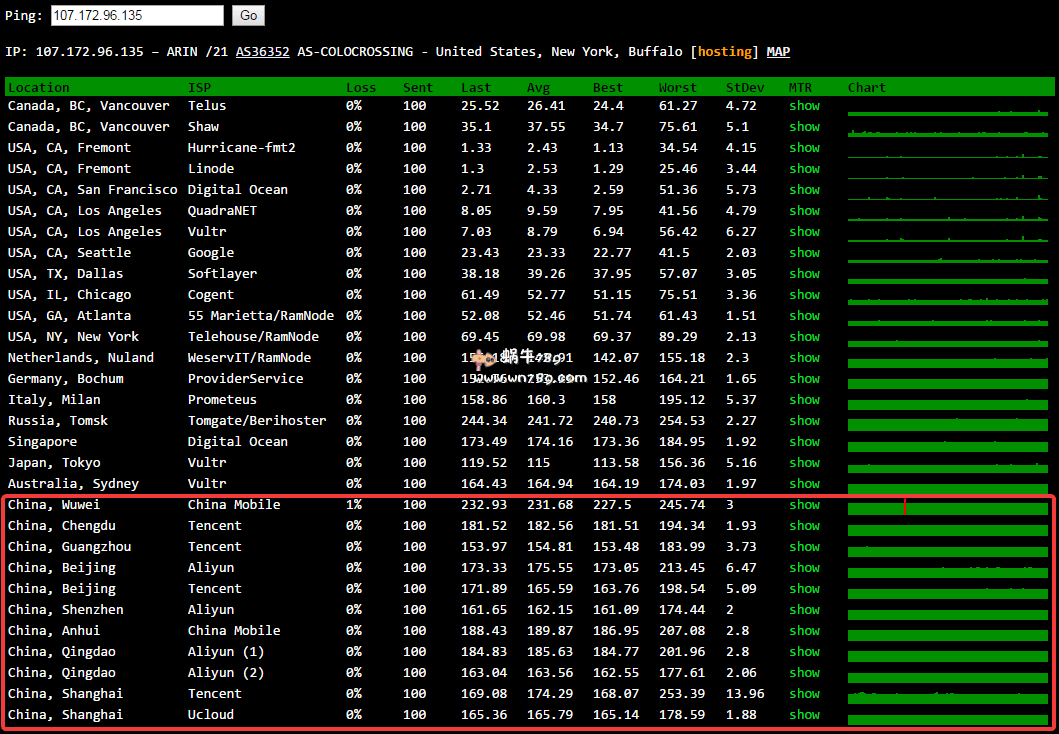 1、中国电信、联通、移动ping测试结果。