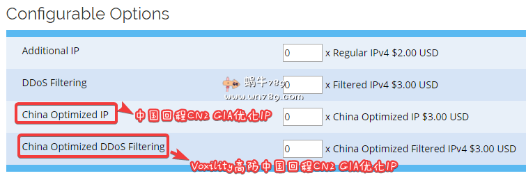 下面蜗牛为大家列举了拉斯维加斯E3处理器的KVM VPS和KVM存储大硬盘VPS,而纽约、卢森堡基本商都处于缺货状态,仅拉斯维加斯有货,不过拉斯维加斯是三个数据中心到国内速度最好的。BuyVM拉斯维加斯方案可以选择额外增加CN2 GIA优化的IP(之前蜗牛亲测是CN2 GIA回程优化,现在是往返CN2),具体如何选择如下图,只需额外增加3美元/月。由于Voxility提供的高防是绕线清洗,如果不是有特殊需求,一般不建议选择,一般直接选择“China Optimized IP”就行。