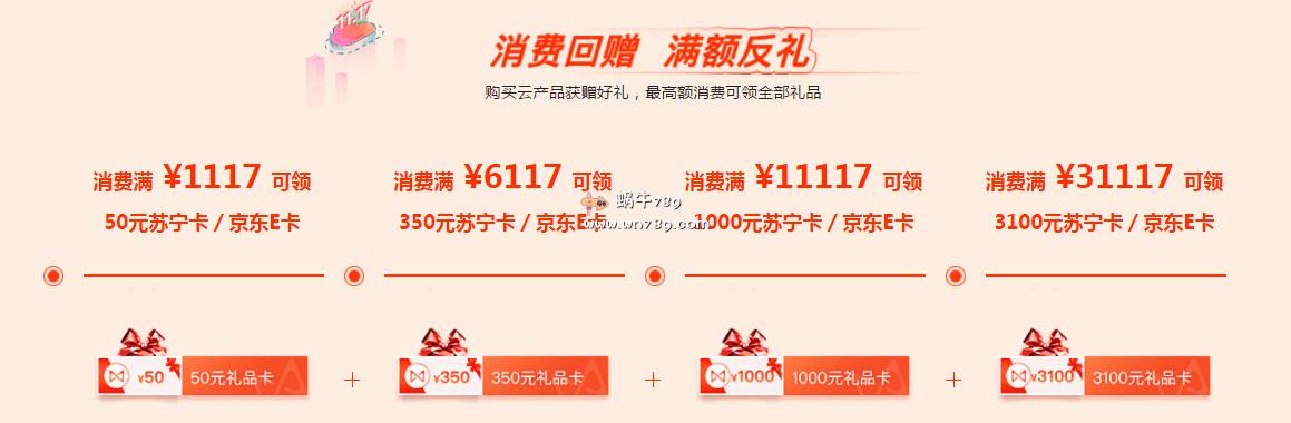 另外活动期间消费满额度,返苏宁卡/京东E卡,详情如下- 消费满 ¥1117 可领 50元苏宁卡/京东E卡