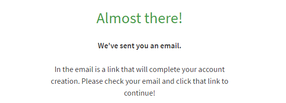 3、显示如下页面表示注册成功,需要打开邮箱查看认证地址。