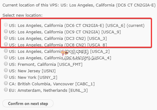 下面展示的高品质美国CN2DC6机房支持切换的机房展示,可以自由在11个机房当中切换,包括DC9、DC8、DC3等CN2线路机房,而且流量保持不变。