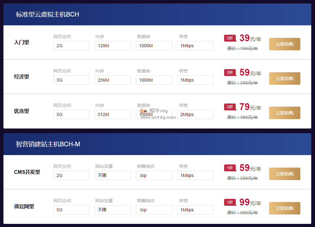 另外“1折折扣券免费抽取专场”的云虚拟主机、CDN、BOS、域名等产品低至1折促销活动也是非常不错的,特别是云虚拟主机产品低至39元每年,最高也只需99元/年,有需要虚拟主机建站的朋友可以重点关注,绝对的超低价格。