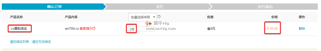 阿里云域名注册业务是收购原万网的业务,目前有一款针对.CO域名注册的活动疑似出现了BUG,一次性注册两年仅需30元,有需要的可以撸一撸试试。当前.CO域名支持稳定,不过暂不能在北京稳定,另外CO域名必须完成实名认证才可以使用,不然域名会处于Serverhold状态无法正常使用。.CO域名寓意也非常还,适合企业公司使用,英文"Corporation、Company"(商业公司)的缩写。另外需要提醒大家的是.CO域名续费价格比较昂贵,需要155元/年。