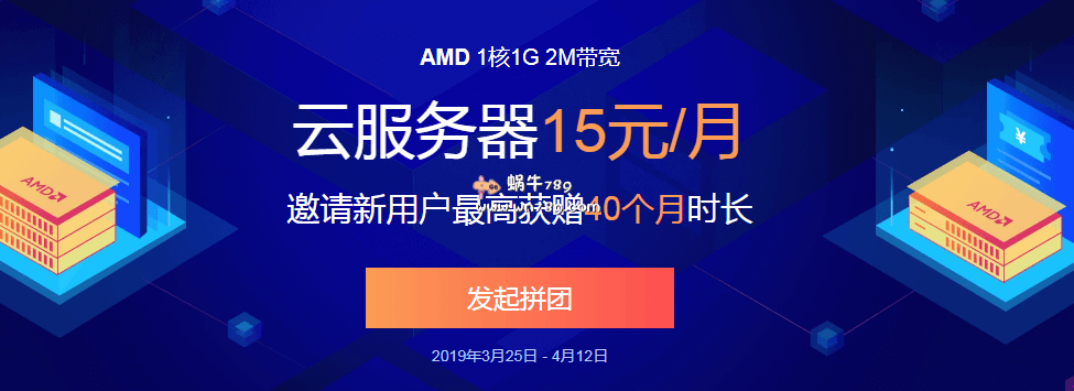 1、活动时间:2019.3.25 - 2019.4.12 2:、活动产品:AMD 1核1G 2M带宽云服务器,搭配50G盘高性能云硬 3、活动对象:老用户(团长),购买过本活动拼团AMD服务器且产品在有效期内的个人用户,每人限购1次。新用户(团员),未在腾讯云付费购买过任何产品的个人用户可以参与拼团,通过团长拼团链接购买1核1G、2M带宽云服务器,可以买2个月送1个月,最高送6个月。 3、拼团奖励: 如果你是老用户也有途径推广,那么自己也可以开团,最低只需花15元购买1个月就可以开团。成功推荐新用户购入可以获取以下奖励: 1-3人,赠送云服务器时长=拼团人数+1个月 4-10人,赠送云服务器时长=拼团人数+5个月 11人以上,赠送云服务器时长=拼团人数+10个月(最高40个月) 团人数排前10的团长,可额外获得200Q币 + 1年腾讯*VIP;若团人数相同,则开团时间早的团排名靠前; 团员奖励:通过团长拼团链接购买1核1G 2M带宽云服务器、50G高性能云盘,买2个月送1个月