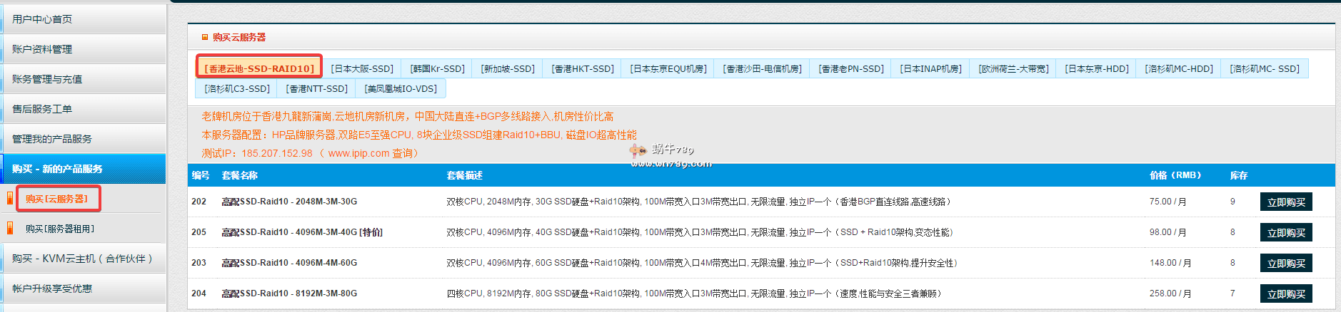 香港 R10/SSD 云地机房 : 185.207.152.1/103.224.82.1 (中国电信直连,BGP多线路)