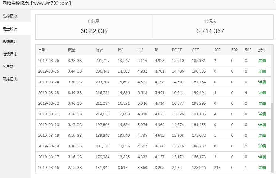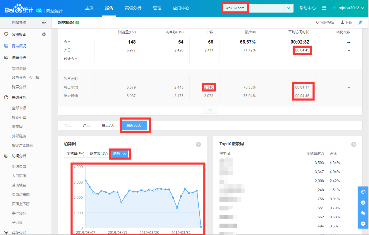 2、百度统计2019年3月7日起一个月的IP访问统计趋势图,平均日IP在2500+以上,每个客户访问停留平均时长在4分钟以上,客户质量非常高。