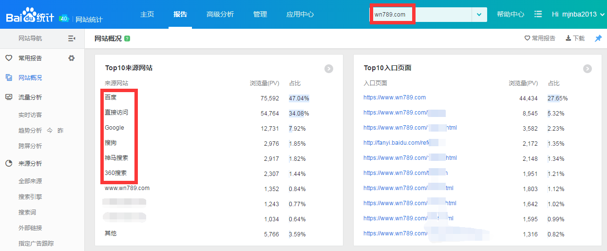 3、百度统计博客流量来源分析,主要是搜索引擎,百度、谷歌、搜狗、神马搜索、360搜索前6席占了5席。百度居第一位。
