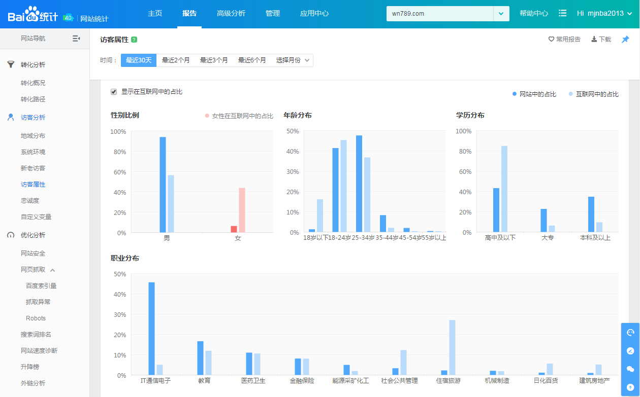 4、百度统计2019年3月7日到4月5日一个月访客属性分析。