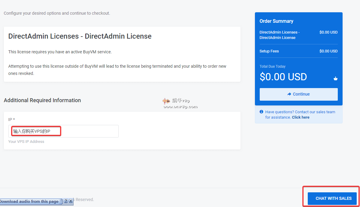 点击这里进入授权领取页面。大家只需在如下图位置填写上自己购买的VPS产品IP即可。