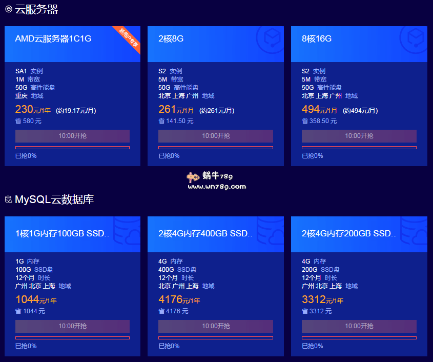 下面列举的云服务器秒杀方案是4月18日上午10:00-13:00的三款方案,从三款秒杀方案不难看出,此次腾讯主打的并不是长付款周期的产品,从腾讯云介绍来看,活动主打的是1Mbps、5Mbps带宽端口方案,其中1Mbps带宽方案基本是新用户专享方案,首年来说价格比较实惠。另外再搭配两款5Mbps带宽的方案,配置相对高一点,而且新老用户可以购买,如果短期内需要稍微高配的一点的方案,还是非常适合的。腾讯云“精选秒杀活动”蜗牛也将持续关注,如果有给力的产品也会第一时间通过博客、Telegram频道、QQ交流群等渠道进行推送。(下面图片不代表每次秒杀都是下列产品,图片仅作展示,即时秒杀方案请点击这里到腾讯云活动页面查看)