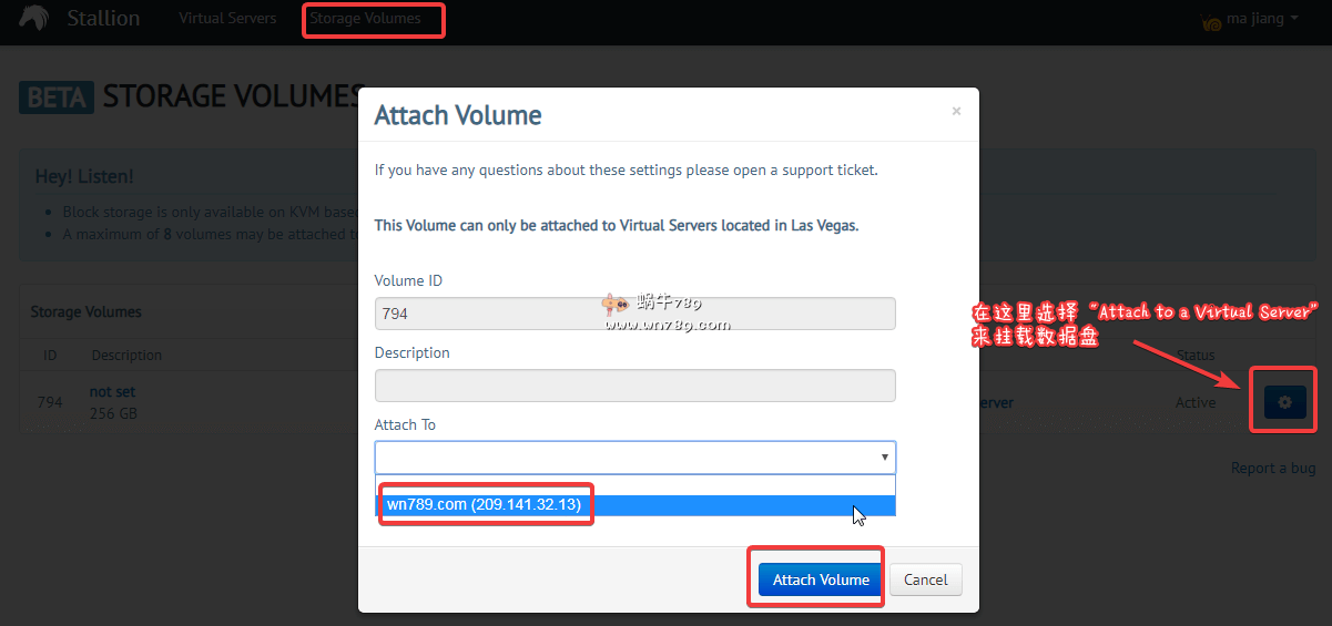 关于BuyVM拉斯维加斯KVM VPS“Block Storage”云存储盘挂载教程,挂载很简单,我们通过VPS管理面板可以非常简便的挂载Block Storage”云存储数据盘到指定VPS。如下图。另外如何把数据盘挂载到VPS指定目录,参加可以参考此文章: