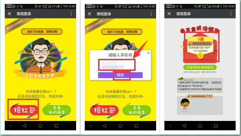 3、从分享的链接进入后,点击“抢红包”,输入手机号码,即可领取1-7天VIP体验。