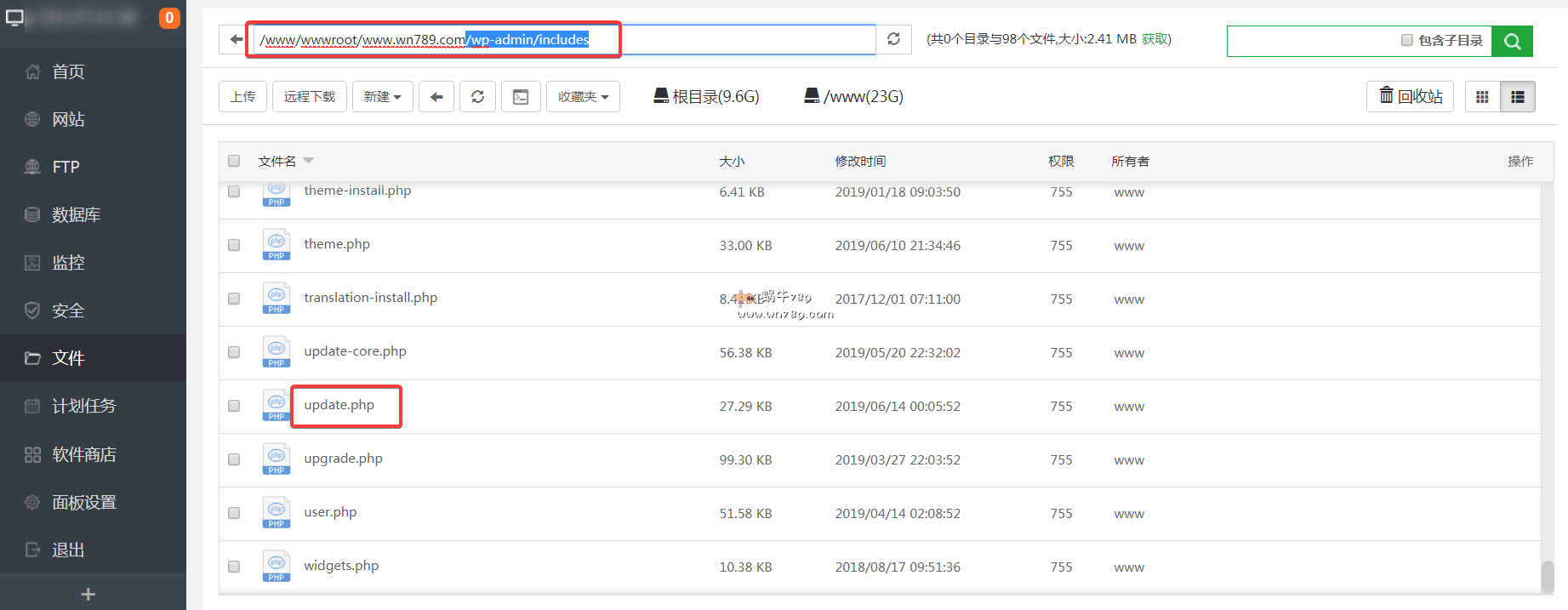 提示升级错误,我们首选到服务器找打WordPress的升级文件“update.php”,在“/wp-admin/includes”目录。蜗牛使用的是宝塔Linux面板,直接用在线文件管理就找到了相应文件,如果你对宝塔Linux面板感兴趣可以查看此文章,有免费版也有收费的专业版:#建站面板推荐#简单好用易上手的Linux建站面板/宝塔Linux面板专业版/首月0.99元体验/年付382元/三年716元/终身授权1388元。