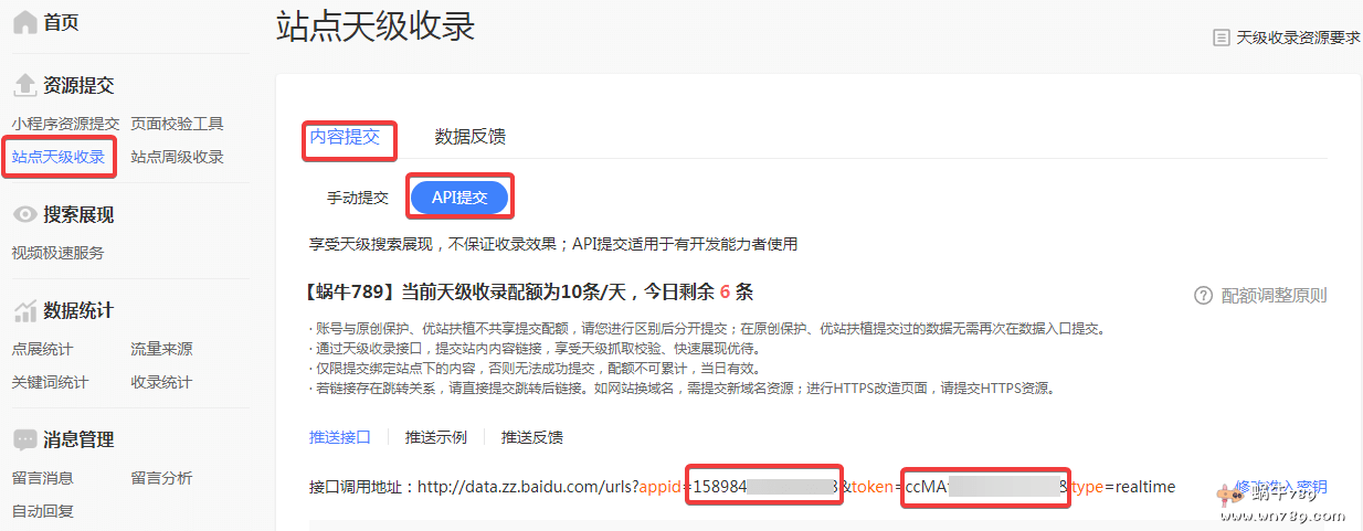这个功能需要填写appid、token信息,如下图在熊掌号查看即可。