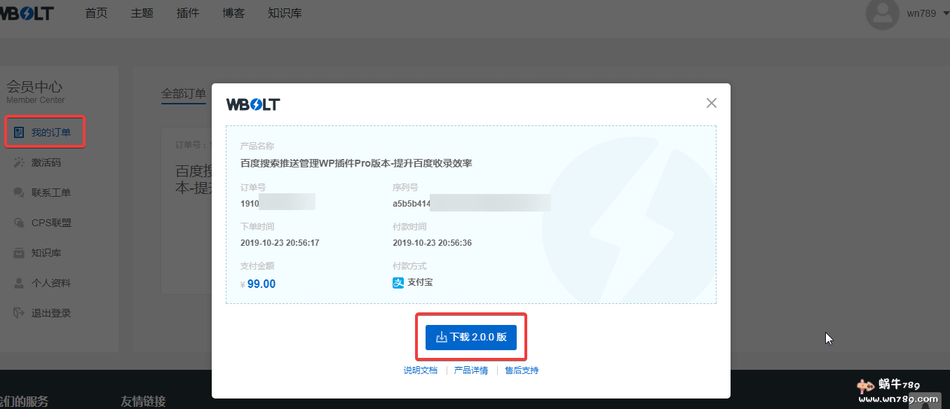 2、最后在我的订单可以查看到“序列号”,也就是授权码。